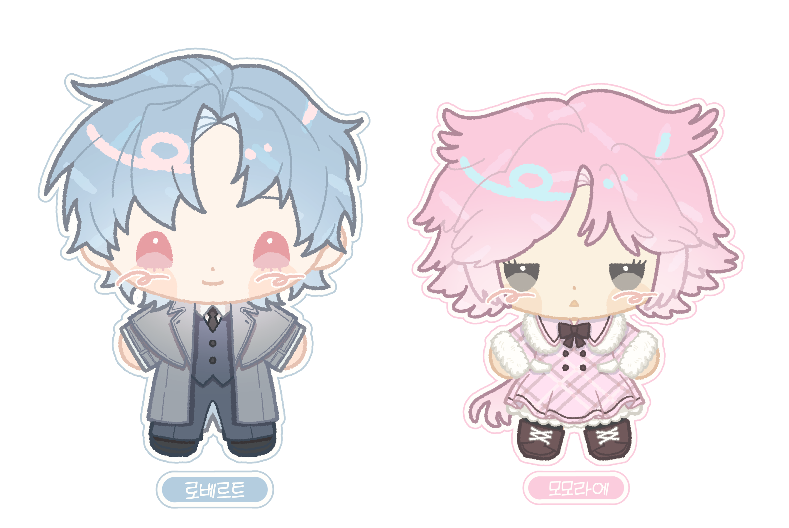 로베르트는 전반적으로 페일블루 머리카락 + 로즈쿼츠색 눈동자 라는 색감이 개 강한 캐디인데도 창백+모노톤 의상 이라는 조합으로 차분st느낌 인데 그걸 과하지않게 표현하기는 언제나 좀 어려움... 캐 왜이렇게 짯지? 무려 2020년도 캐자. (자망이랑 페어짜놓고 25년도에나 굴리고 있지만) 그 당시의 나는 무슨생각을... 그치만 모모가 핑크라서 눈에 모모박은거같고 모모 로베르트가 낳은거같고 너무좋음...